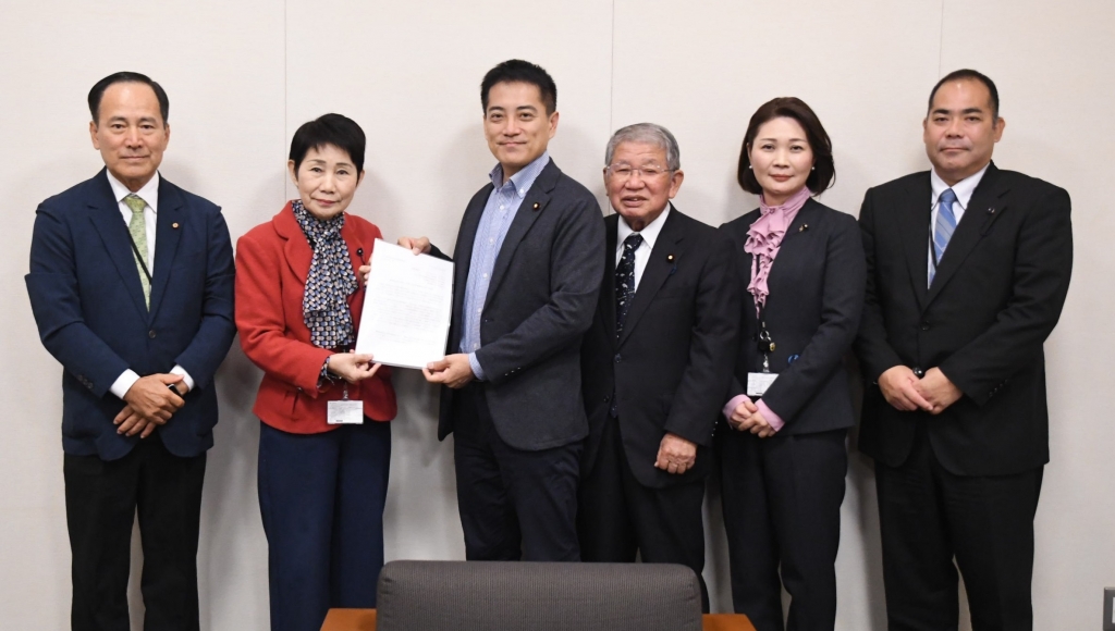 要請には山内末子(てぃーだ平和ネット)、次呂久成崇(おきなわ新風)、平良識子(社大党)の各県議も参加。与党県議団は13日に上京し国政の与野党各党に7円の維持を要請していました。(しんぶん赤旗 2025年11月15日)