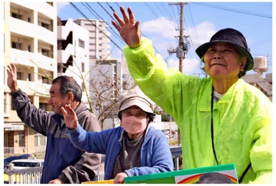 近くで飲食店を営む大城直さん(73)は「あかみねさんは信念の持ち主。米軍基地や日米地位協定の問題について、私たちが政府に言いたいことを国会で追及してくれる」と話します。“自民候補と互角”との地元紙の報道に危機感を募らせ、「知り合いに広げ、商店街でも呼びかけます」と話しました。